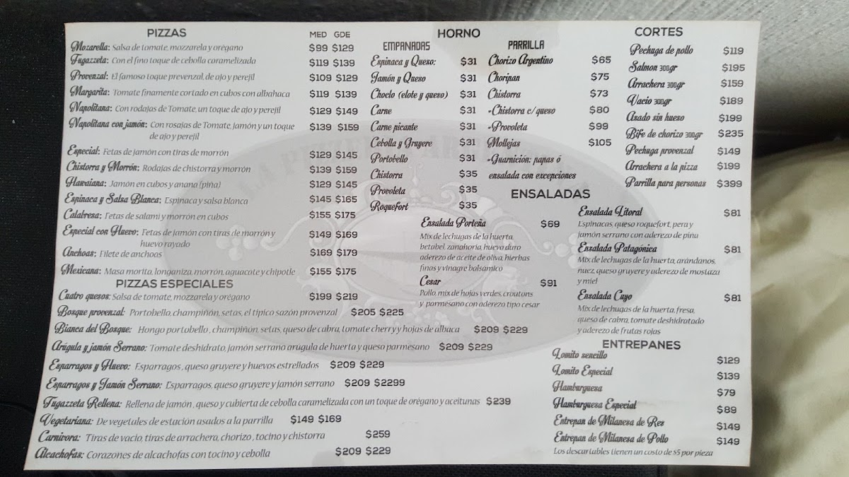 La Pizzeria Argentina Menu